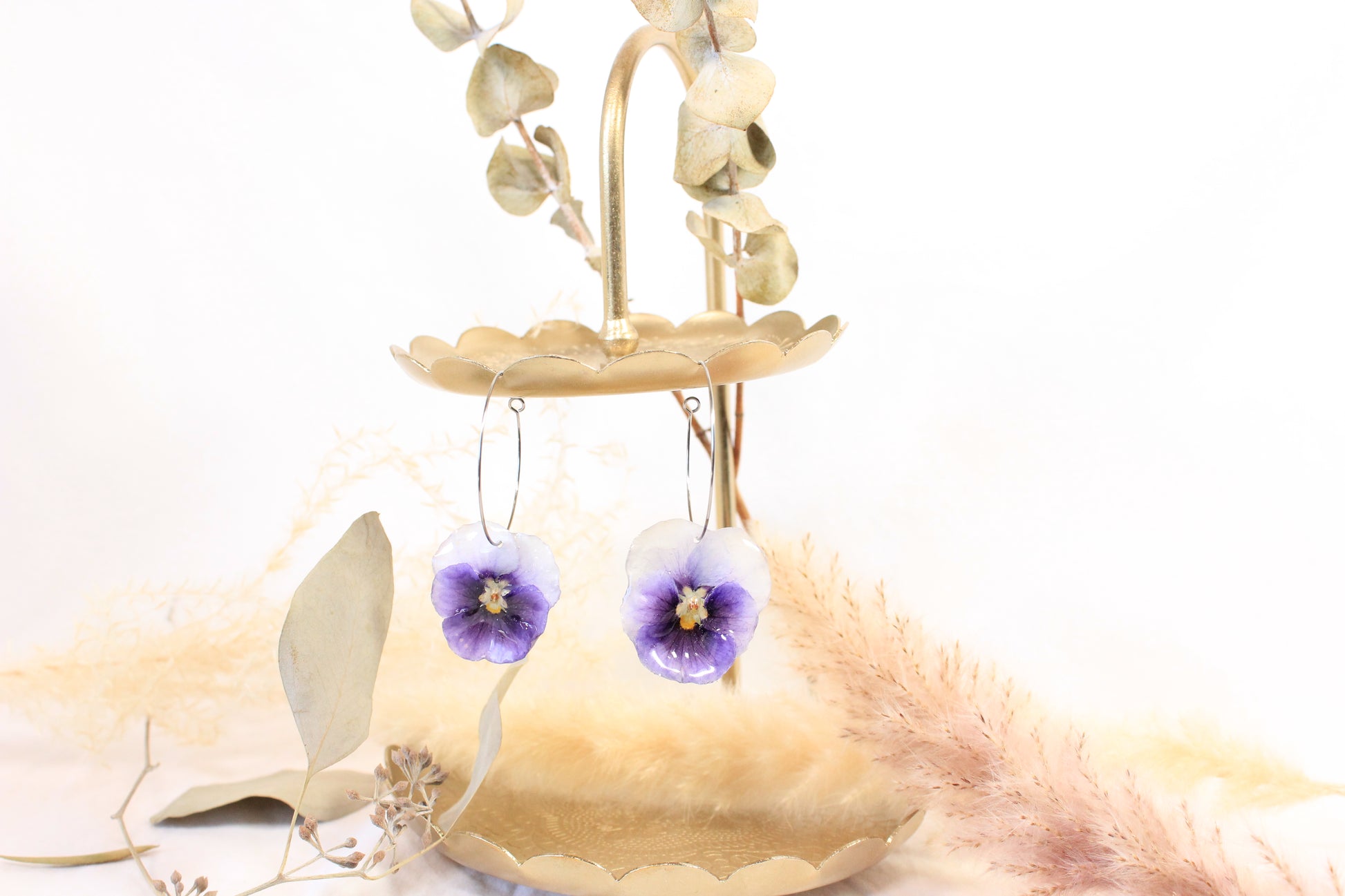 Ces anneaux en acier inoxydable argentés étonnent par leur légèreté et par leurs vraies fleurs délicatement préservées. Chaque paire capture la grâce éphémère des fleurs. Un accessoire poétique pour un style aussi unique que vous!