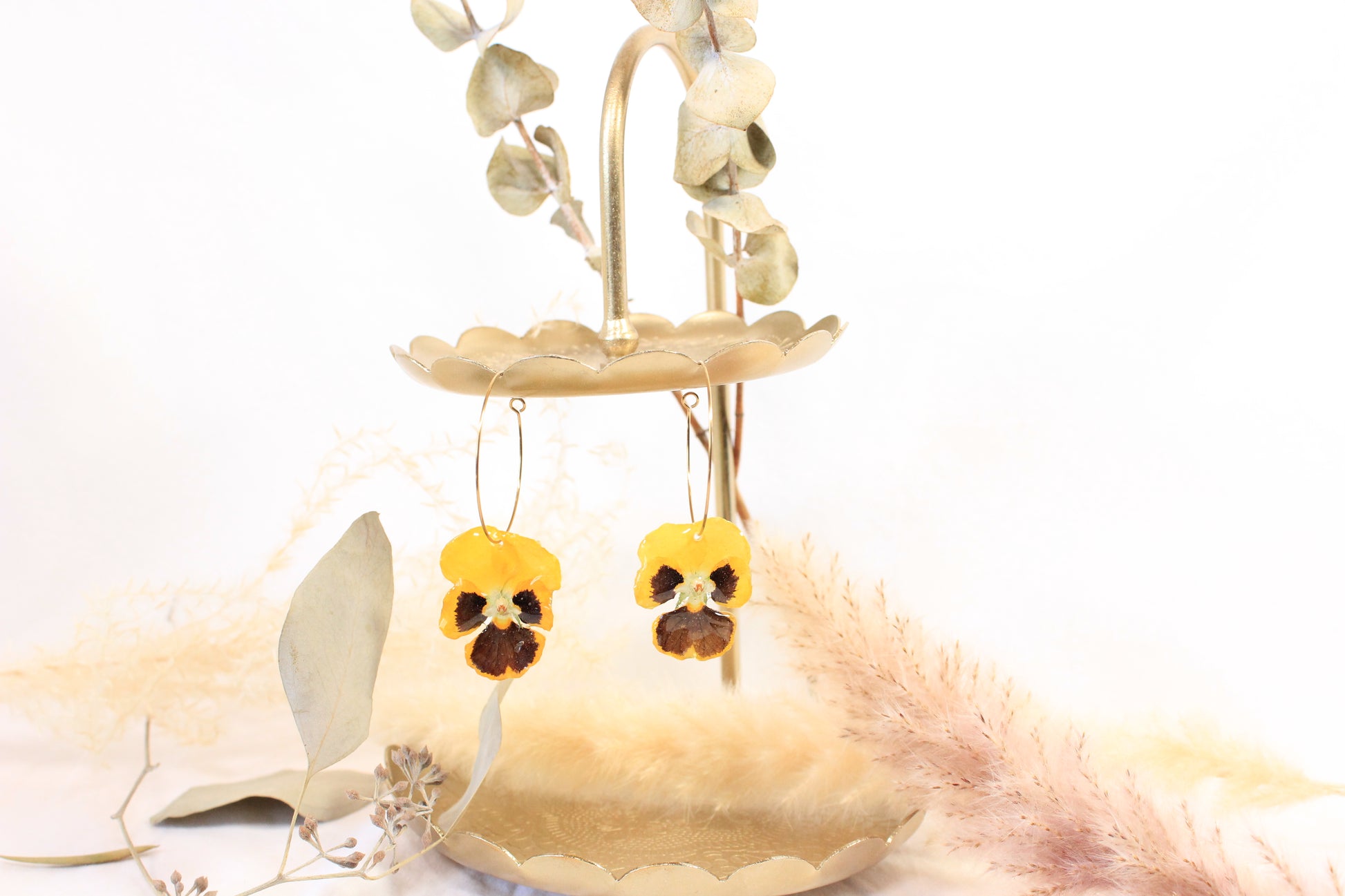 Ces anneaux en acier inoxydable argentés étonnent par leur légèreté et par leurs vraies fleurs délicatement préservées. Chaque paire capture la grâce éphémère des fleurs. Un accessoire poétique pour un style aussi unique que vous!