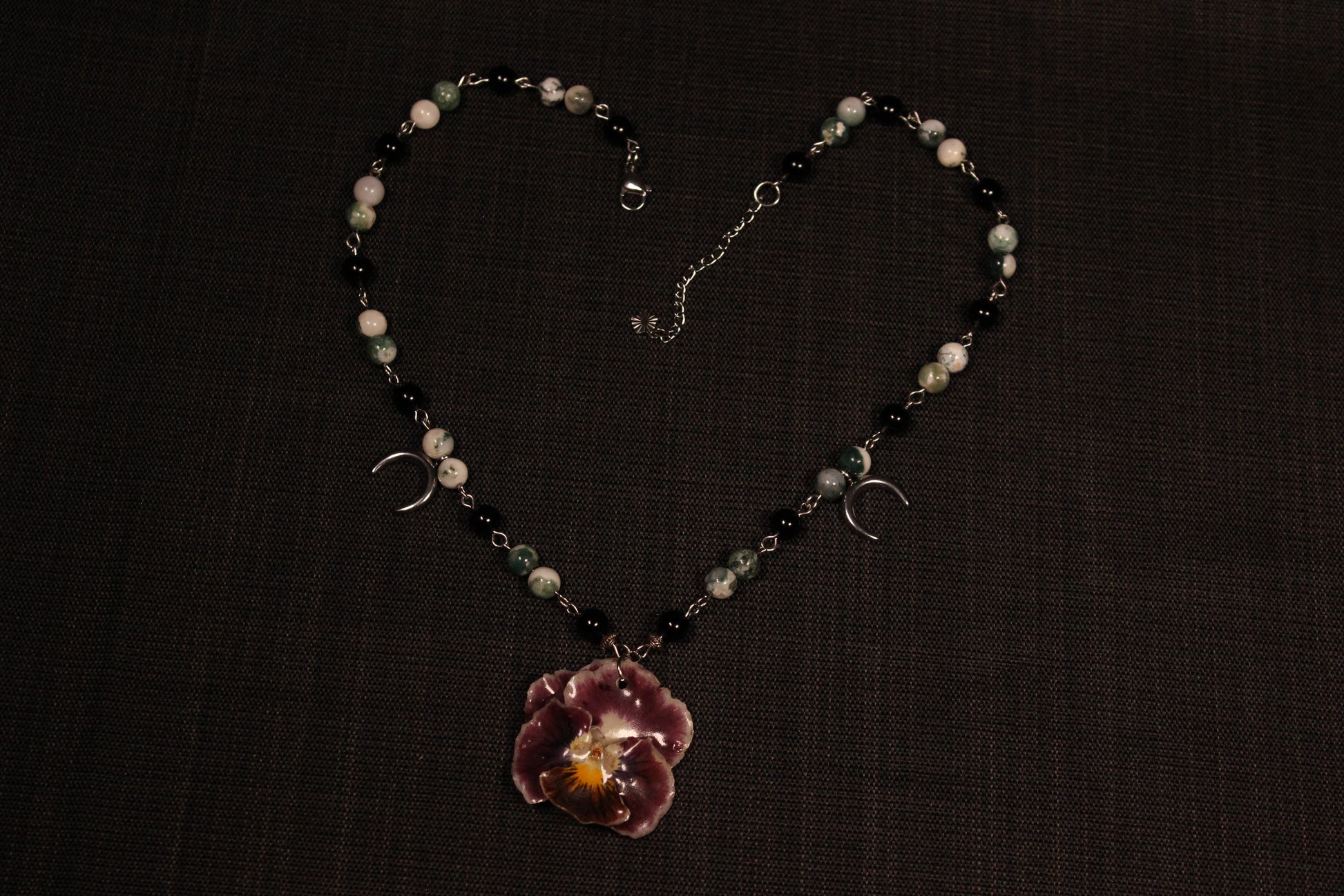 Chaque collier est une pièce unique. Ils mettent en valeurs de vraies fleurs séchées, des pierres naturelles, des perles d’eau douce et des billes de verre. Un mélange inattendu qui fait de ces bijoux de vraies «statement piece». À porter en solo ou en superposition pour élever n’importe quel look.