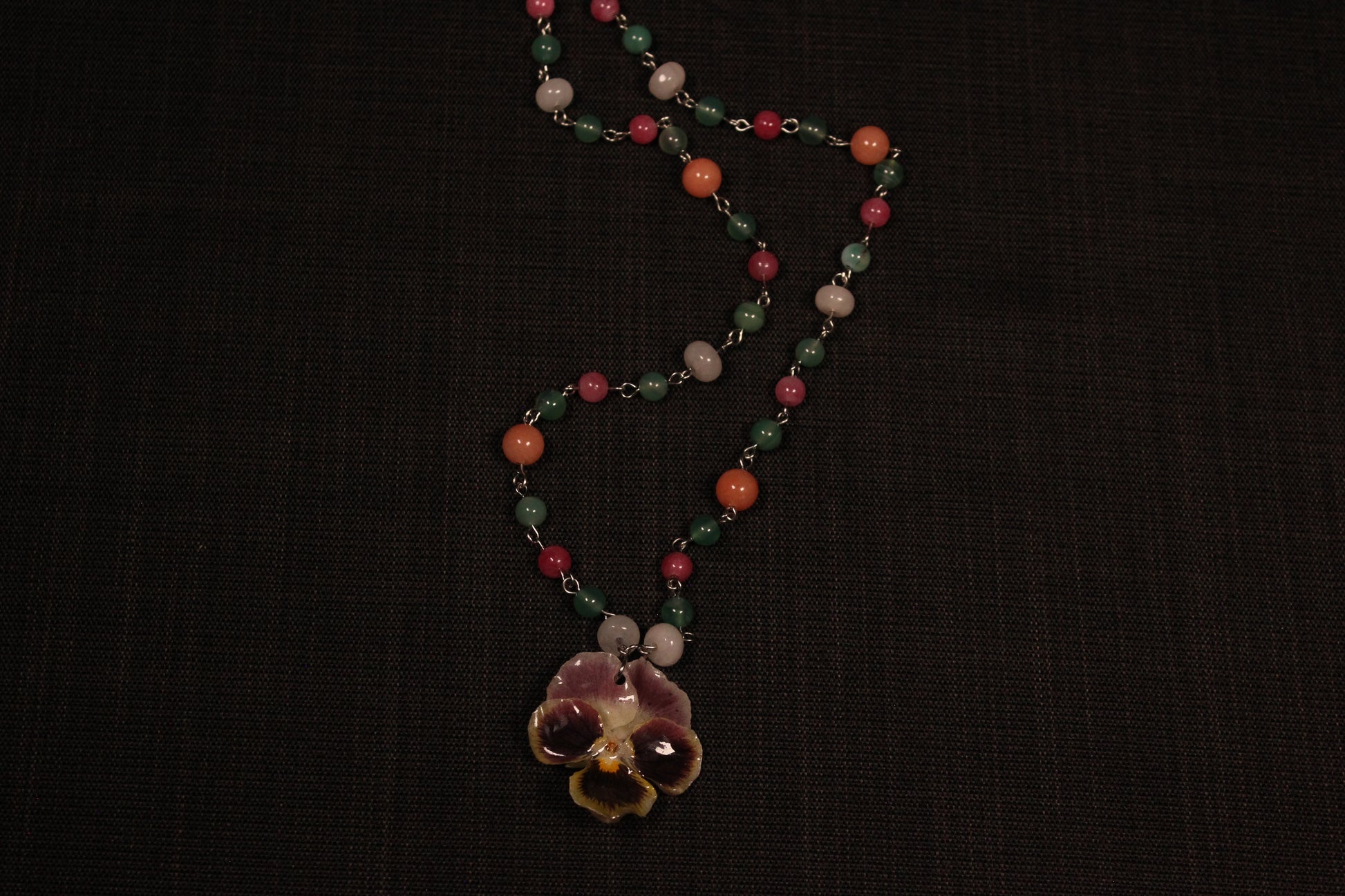 Collier à billes avec pensée tricolore
